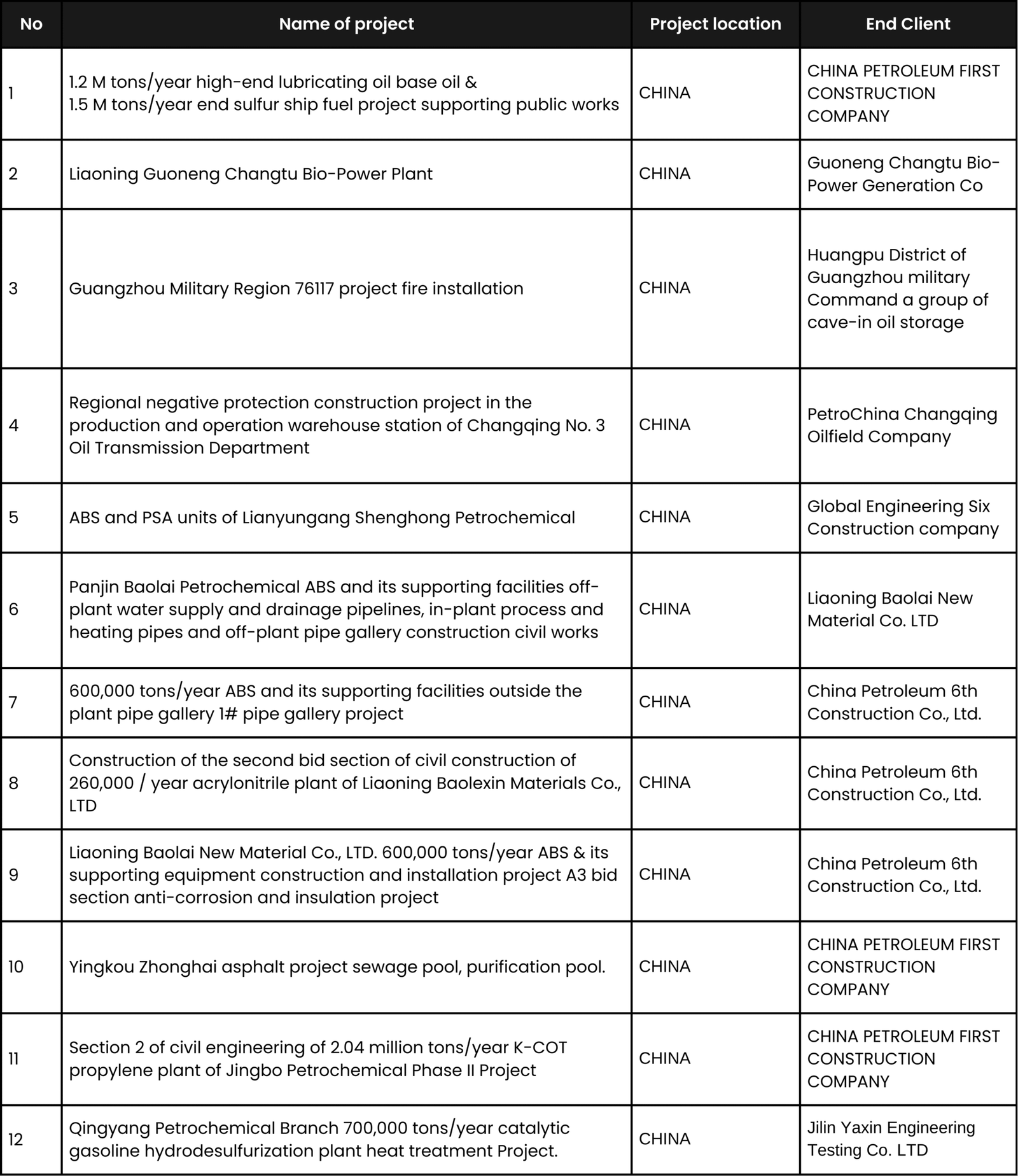 Panjin Baolai Petrochemical ABS and its supporting facilities off-plant water supply and drainage pipelines, in-plant process and heating pipes and off-plant pipe gallery construction civil works |